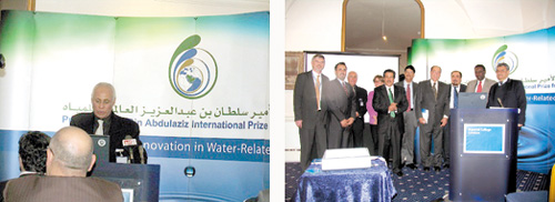 إلى ذلك تم تسليط الضوء على الجائزة وأهدافها النبيلة والدعوة للترشيح للدورة الرابعة لها، إضافة إلى نقاش علمي بين الخبرات من الجانبين، تم خلاله بحث أوجه التعاون المشترك لحل مشكلات المياه في العالم ودعم أنشطة الجائزة على المستوى الدولي. وقدم كل من البروفيسورة باتريشيا جوبير والبروفيسور هوارد ويتير ومعالي محافظ المؤسسة العامة لتحلية المياه المالحة الأستاذ فهيد بن فهد الشريف والدكتور محمد السعود وكيل وزارة المياه والكهرباء عروضاً بحثية في مجالات إدارة المياه والموارد المائية والقضايا الاجتماعية المصاحبة لاستخدامات المياه.