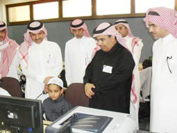 دشن المدير العام للتربية والتعليم بالمنطقة الشرقية الدكتور عبدالرحمن المديرس أول فصل تعليمي رقمي (المحوسب) على مستوى المملكة بمدرسة ابن جبير الابتدائية بالخبر، وذلك بحضور مدير مكتب التربية والتعليم بالمحافظة إبراهيم الشمراني. وتخلل حفل التدشين شرح موجز حول خدمات الفصل التجريبي، قدمه مربي الفصل هلال الغريبي. مشيراً إلى أن الدراسة في هذا الفصل تعتمد على التعلم باستخدام تقنية المعلومات الحديثة والاتصالات، التي تمكِّن الطالب من اكتساب الخبرات التعليمية المستهدفة بأسلوب ممتع وشيق؛ حيث يمكن للطالب الاستغناء بصفة تدريجية عن الواجبات المنزلية وحمل الكتب المدرسية وجلبها للمدرسة؛ وذلك لوجود نسخة إلكترونية من المقررات في الحاسب, كما يمكن للطالب أن يستغني عن الاختبارات التحريرية لتوافر اختبارات أدائية تعتمد على البحث والتجربة والجهد البدني والعرض الشفوي والمشروع الميداني. ويمكن لمعلم الفصل الذي يطبق هذه التجربة الاستغناء عن الإلقاء والشرح الشفوي المطول وكذلك الكتابة على السبورة.