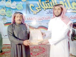 اختتمت أمس الأول فعاليات الملتقى الشبابي الثالث بساجر تحت عنوان: (وقاية الشباب من أضرار التدخين والمخدرات) حيث أقيم حفل ختامي على شرف فضيلة رئيس مجلس إدارة المكتب التعاوني للدعوة والإرشاد وتوعية الجاليات الشيخ عقل العقل وبحضور الداعية يوسف المطرود وبعض الأعيان بساجر، والذي نظمه المكتب حيث تم تكريم الداعم الرسمي للملتقى، كما كرمت اللجنة المنظمة للملتقى محرر صحيفة (الجزيرة) بساجر مسفر الجذع بتسليمه درع المكتب نظراً للتغطيات الإعلامية عن الملتقى والمكتب بعد ذلك توالت فعاليات الملتقى من مسابقات وسحوبات وجوائز قيمة، كما تم تخصيص يومين مفتوحين للنساء، كما عبر عدد من الشباب لـ(الجزيرة) عن ارتياحهم لهذا الملتقى الذي أقيم لما له من فوائد تعود بالخير والنفع على الشباب متمنين أن يقام كل عام خلال العطلة الصيفية.