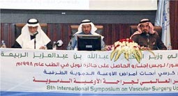 افتتح معالي وزير الصحة الدكتور عبد الله بن عبد العزيز الربيعة أمس المؤتمر العالمي الثامن للمستجدات في جراحة الأوعية الدموية الذي ينظمه كرسي أبحاث أمراض الأوعية الدموية الطرفية بجامعة الملك سعود، بالتعاون مع الجمعية السعودية لجراحة الأوعية الدموية والجمعية الخليجية لجراحة الأوعية الدموية, ويستمر لمدة يومين في كلية الطب بمستشفى الملك خالد الجامعي. ويستضيف الكرسي البروفيسور لويس إجنارو الحائز جائزة نوبل للطب عام 1998م والبروفيسور تيم هنت الحائز على جائزة نوبل للطب والفسيولوجيا عام 2001م إضافة إلى نخبة من الأطباء والجراحين من داخل المملكة وخارجها وقد أشار معالي وزير الصحة أن المؤتمر يعد امتداداً لما تقوم به الكلية من نشاطات لرفع مستوى التعليم الطبي المستمر مشيداً بجهود إدارة الجامعة في التركيز على برامج البحث العلمي وبرامج المعرفة مؤملاً أن تتركز على البحث الانتقالي الذي يعود بالنفع على الرعاية الصحية في المملكة. من جانبه أوضح معالي مدير جامعة الملك سعود الدكتور عبدالله العثمان أن الجامعة استطاعت أن تُحدث نقلة علمية ونوعية متميزة من خلال إطلاقها للعديد من البرامج العلمية والبحثية والمعرفية. وقال «إن تعزيز الشراكة مع أرقي الجامعات والمراكز البحثية العالمية وتوقيع الاتفاقيات في مختلف المجالات ومنها المجال الطبي بدأ يؤتي ثماره مؤكدا أن كلية الطب لديها العديد من المشاريع في كافة الأقسام والوحدات ونوه الدكتور العثمان بالدعم غير المحدود الذي تلقاه الجامعة من الدولة - رعاها الله - فيما أكد عميد كلية الطب والمشرف على المستشفيات الجامعية الدكتور مساعد بن محمد السلمان، «إن الكلية تواصل حضورها الدولي العلمي من خلال تنظيم مثل هذه اللقاءات التي تناقش وتطرح كل ما استجد حول جراحة الأوعية الدموية وبشراكة مع عدد من الجهات العلمية داخل الجامعة وخارجها.