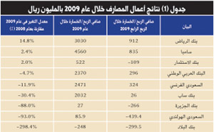 (1) كافة البنوك المحلية أعلنت عن تحقيقها لأرباح صافية خلال الاثني عشر شهرا لعام 2009، باستثناء بنك البلاد الذي خرج خاسرا لحوالي 248 مليون ريال.