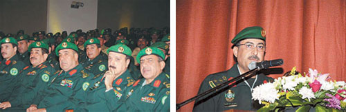 بحضور قائد الحرس الملكي معالي الفريق أول حمد بن محمد العوهلي وعدد من القيادات بالحرس الملكي نظَّمت كتيبة الحرس الملكي الأولى للأمن والحماية صباح يوم الثلاثاء الماضي حفل ختام الأنشطة الثقافية والاجتماعية والرياضية، وذلك بصالة النشاط الثقافي بمقر قيادة الحرس الملكي بالرياض. وقد بُدئ الحفل بآيات من الذكر الحكيم، ثم كلمة قائد كتيبة الحرس الملكي الأولى للأمن والحماية العميد حسن بن حمد الرشيد، الذي أثني على الجهود الكبيرة التي يقدمها معالي الفريق أول العوهلي لهذه الكتيبة حتى ارتقت إلى أعلى المستويات بأعمالها العملية والتعليمية على الوجه المطلوب. وقال العميد الرشيد: لا تعتبر هذه الإنجازات النهاية، بل ما زلنا نسعى للأفضل. تلا ذلك عرض فيلم وثائقي عن الكتيبة ونشاطاتها، بعد ذلك قدمت قصائد شعرية ومسرحية، كما قامت الكتيبة بتكريم منسوبيها المتقاعدين الذين أنهوا خدمتهم بالكتيبة، إضافة إلى تكريم الفائزين بمسابقة حفظ القرآن الكريم وتجويده، والسرايا الحاصلة على المراكز الأولى في المسابقات الإدارية، والسرية الفائزة بكأس الدوري الرياضي وأصحاب المراكز الأولى في مسابقات الرماية والضباط المتميزين في الكتيبة. وفي ختام الحفل تشرف العميد الرشيد بتقديم هدية تذكارية لراعي الحفل الفريق الأول العوهلي نظير تشريفه.