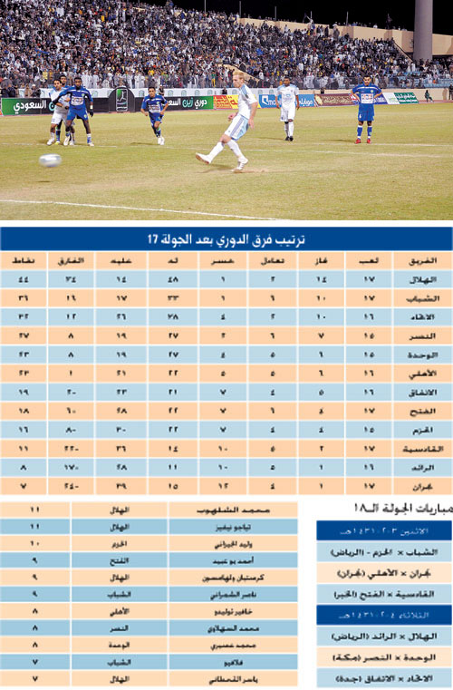 - سجل الحسن اليامي الهدف رقم (300) في دوري زين من نقطة الجزاء ضد النصر، وهو الهدف الذي اختتمت به الجولة السابعة عشرة ووصل المعدل التهديفي إلى (3.09) لكل مباراة.