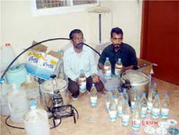 وقد تم العثور داخل المنزل على كميات من العرق المسكر ومجموعة من السيديهات تحتوي على مواد إباحية، ومجموعة كبيرة من شرائح الجوالات وكذلك ذاكرات جوالات تحتوي على مقاطع من الأفلام الإباحية. وبالتحقيق معه أفاد قائد السيارة أنه اشترى المسكر من مكان في إحدى المزارع المجاورة لمدينة الدوادمي. وعلى الفور انتقلت الدوريات إلى الموقع وداهمته لتعثر داخله على مصنع متكامل داخل مستودع الأعلاف يتم فيه تصنيع العرق المسكر، وتمت مصادرة المواد المستخدمة في التصنيع، كما تم القاء القبض على أحد العاملين داخل الموقع.