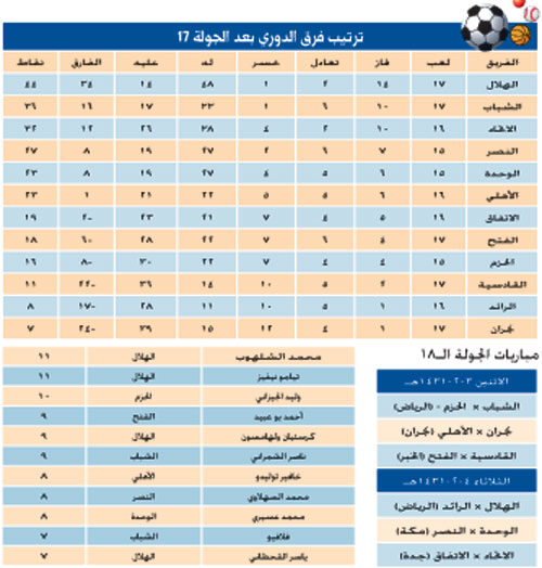 وفي نجران وعلى ملعب نادي الأخدود يستضيف فريق نجران نظيره الأهلي وهو في أمس الحاجة للنقاط الثلاث حاله كحال منافسه الأهلي وهذا ما سيجعل المباراة فوق صفيح ساخن، وستكون الطموحات المتناقضة هي الأبرز في المباراة، فالفريق النجراني يتمنى اللحاق بفرصة البقاء والابتعاد عن المركز الأخير وستكون مباراة اليوم هي الفيصل للفريق إذا ما أراد الابتعاد لإيقاف خسائره المتلاحقة التي أدت إلى ظهور الفريق بصورة مرتبكة وعجز عن تحقيق نقطة طوال 8 جولات خسرها وتوقف معها الرصيد على 7 نقاط وبقي في المركز الأخير منذ عدة جولات، ويأمل في استعادة توهجه بتحقيق فوز يعيد الحسابات والآمال للبقاء، ويشكل الحسن اليامي العلامة الفارقة في الفريق وهو بذلك أهم ورقة نجرانية ويبرز إلى جانبه فهد عداوي وأنس بني ياسين بجانب موسى سليمان ورودا عبد الصمد. في الجهة الأخرى يدخل الفريق الأهلاوي متسلحاً بالحيوية والخبرة معاً في خليط أظهر الفريق بشكل جيد في المباريات الماضية وستكون النقاط الثلاث التي حققها على حساب القادسية في الجولة الماضي خير دافع له للخروج بمثلها اليوم من أجل المنافسة على المركز الرابع، حيث يحتل الفريق المركز الخامس برصيد 23 نقطة وتبقت له مباراة أمام الحزم سيعمل على الفوز بها من أجل الحفاظ على أمله في المنافسة على مركز يؤهله لدوري أبطال آسيا، ويخشى الفريق في هذا اللقاء تعرض لاعبيه للإرهاق بسبب أغلب مشاركتهم في دور الأربعة لبطولة كأس الأمير فيصل بن فهد، وسيغيب المحترف التونسي سيف غزال عن الفريق لإيقافه بالبطاقة الحمراء، ولكن الاستقرار الذي يعيشه الفريق سيغلف الأداء بسبب وجود نجوم شبان تدعمهم الخبرة الكبيرة لنجومه الكبار، ويبرز في الفريق تيسير الجاسم العائد من جديد بعد الإيقاف إلى جانب مالك معاذ ومحمد مسعد إضافة إلى الجيزاني ومعتز الموسى ومنصور الحربي وياسر المسيليم.