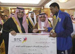 نواف بن فيصل بن فهد بتتويج اللاعبين الواعدين بجائزة الاتصالات السعودية بين شوطي