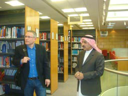 وكان في استقبال الباحث الأمريكي الذي يزور المملكة لدى وصوله للمكتبة الدكتور الزيد نائب المشرف العام على المكتبة, والذي قدم للزائر الأمريكي شرحاً وافياً عن أبرز مقتنيات المكتبة وأنشطتها الثقافية والعلمية وأقسامها المختلفة, ودورها في خدمة الثقافة والعلم وتعزيز فرص الحوار والتفاعل الإيجابي بين الحضارات والثقافات.