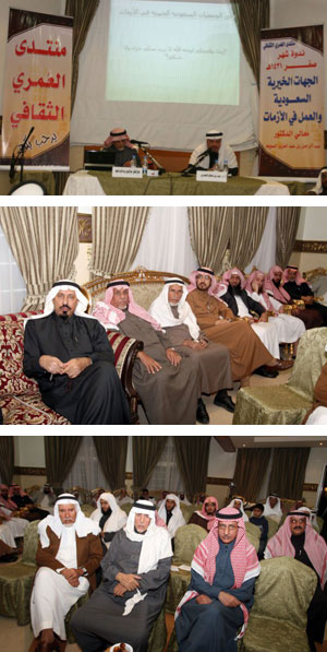 جاء ذلك في سياق المحاضرة التي ألقاها معاليه في الندوة الشهرية التي نظمها منتدى العُمري، بعنوان: (دور الجمعيات السعودية الخيرية في الأزمات)، حيث تناول معاليه في محاضرته عدداً من المحاور، المحور الأول: مدخل عن العمل الخيري، والمحور الثاني: معلومات عن الجمعيات الخيرية في المملكة، والمحور الثالث: نماذج من عمل الجمعيات في الأزمات: كارثة سيول جدة، والمحور الرابع: التطلعات.