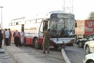 شهد طريق الملك عبد الله بن عبد العزيز ببريده صباح أمس الأول حادث مروري بين حافلة تقل طالبات جامعة القصيم وثلاث سيارات، حيث نتج عن الحادث إصابة أربع طالبات بجروح جراء تهور سائق الحافلة وقطعه للإشارة المرورية بسرعة عالية.