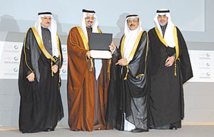 وتسلّم مدير عام مجموعة الموارد البشرية بالمصرف الأستاذ سعود الحوشان الشهادة من صاحب السمو الملكي الأمير فيصل بن خالد بن عبدالعزيز نائب رئيس مجلس أمناء مؤسسة الملك خالد الخيرية.