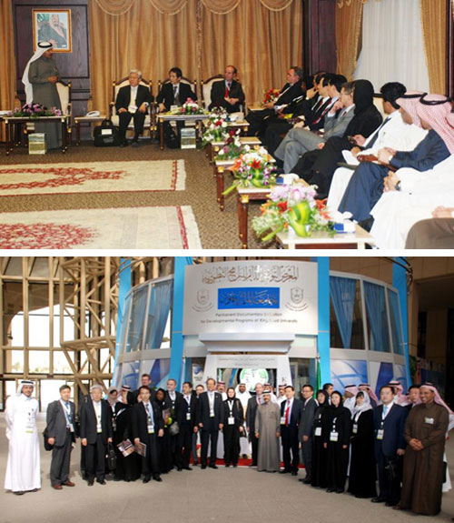 خلال مشاركتهم في المعرض الدولي الذي تنظمه وزارة التعليم العالي زار أمس الثلاثاء وفد من جامعات عالمية مرموقة جامعة الملك سعود حيث كان في استقبالهم وكيل الجامعة للدراسات العليا والبحث العلمي الدكتور علي الغامدي والمشرف على برنامج التوأمة العالمية الدكتور سعد الحسين والمدير التنفيذي لحاضنة الرياض للتقنية الدكتور مزيد التركاوي وعميد كلية الطب الدكتور مساعد السلمان ووكيل كلية الطب الدكتور محمد العمران, وقد قام الوفد رفيع المستوى بجولة في مختلف أرجاء الجامعة حيث قاموا بزيارة مكتبة الأمير سلمان وكلية الطب ومختبر الخلايا الجذعية ومقر الجامعة الرئيسي وأبدى الوفد الذي ضم نحو 50 عالماً وعالمة انطباعاً جيداً حول ما شاهدوه واطلعوا عليه من المشاريع البحثية والتطويرية معبرين عن إعجابهم بما تقوم به الجامعة حالياً من التركيز على تطوير البحث العلمي , بعد ذلك تناول الضيوف طعام الغذاء الذي أعدته الجامعة على شرفهم.