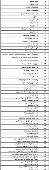 وفيما يلي: أسماء الشركات والمؤسسات التي شملها التكريم.