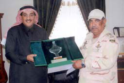 نيابة عن صاحب السمو الملكي الأمير عبد الرحمن بن ناصر بن عبد العزيز محافظ الخرج قدم وكيل محافظة الخرج الأستاذ مساعد السالم بديوان المحافظة درعا تذكاريا وشهادة شكر وتقدير مقدمة من سمو المحافظ إلى اللواء الركن فهد القحطاني قائد منطقة الخرج سابقا.