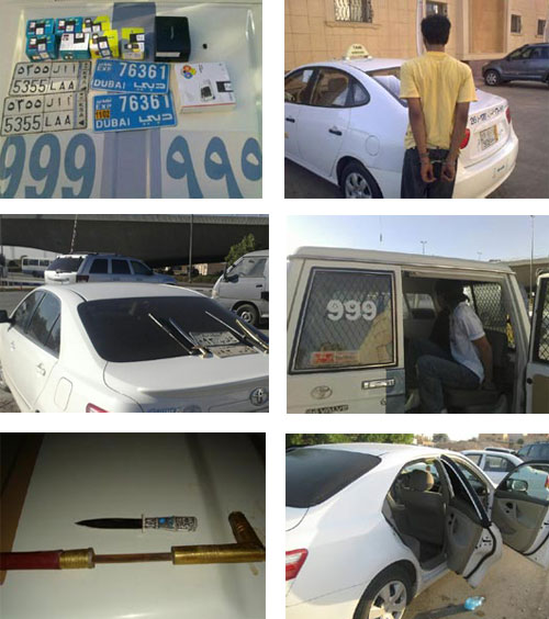كما تمكنت فرق دوريات الأمن بمنطقة الرياض من القبض على شخصين يستقلان سيارة كامري أبيض اللون، بعد التأكد من رقم لوحة السيارة اتضح أنها مسروقة حديثاً، وبعد تفتيش السيارة وجد بحوزة الأشخاص أسلحة بيضاء من نوع سيوف، كما وجد مع الأشخاص لوحتان لسيارات غير عائدة لهم يحتمل ان تكون مسروقة هي الأخرى. سلم الجناة لمركز شرطة الملز لإجراء شرطة منطقة الرياض تجرى تحقيقاتها مع المقبوض عليهم وسيتم إحالتهم للقضاء بعد الانتهاء من التحقيق.