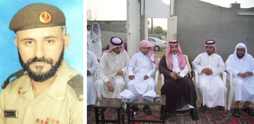 كما قدم محافظ أبو عريش الأستاذ محمد بن ناصر بن لبدة تعازيه الحارة ونقل تعازي القيادة لذوي شهيد الواجب الرقيب الجابري، وأعرب عن اعتزازه بما قدمه الشهيد للدفاع عن وطنه من المتسللين، وقال إن الرقيب الجابري استشهد دفاعاً عن وطنه وهذه أمنية يتمناها كل شخص يعيش في هذا البلد، وأكد بن لبدة أن أبناء الشهيد هم مسؤولية الدولة وسترعاهم ولن تقصر معهم في أي أمر يحتاجونه. وقد استشهد الرقيب عبده بن محمد علي الجابري من سلاح المهندسين بمنطقة جازان يوم الأربعاء الماضي إثر انفجار لغم أودى بحياته في الحال. وقال ماجد الجابري أخو الشهيد إن أخاه كان يعمل بكل إخلاص ويتمنى الشهادة، وكان دائماً شديد الاهتمام بعمله وفي كل أموره، وله خبرة كبيرة في فك الألغام، مشيراً إلى أن الرائد عبدالمحسن القحطاني قائد قسم المهندسين بقوة جازان كان يسمي الشهيد بصائد الألغام.