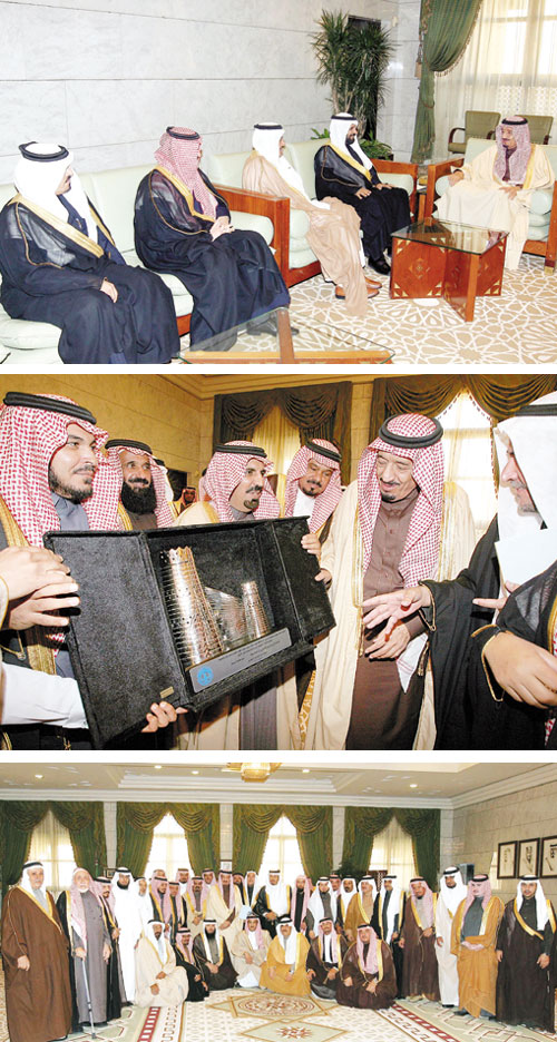 استقبل صاحب السمو الملكي الأمير سلمان بن عبدالعزيز أمير منطقة الرياض في مكتب سموه بقصر الحكم أمس محافظ عفيف الدكتور عبدالله بن سلطان بن سفران، وأعضاء المجلس المحلي والبلدي وأعضاء الغرفة التجارية وعدد من أهالي المحافظة، الذين قدموا للسلام على سموه بمناسبة عودته لأرض الوطن، وتهنئة سموه بسلامة صاحب السمو الملكي الأمير سلطان بن عبدالعزيز ولي العهد نائب رئيس مجلس الوزراء وزير الدفاع والطيران والمفتش العام وعودته إلى أرض الوطن سالماً معافا.