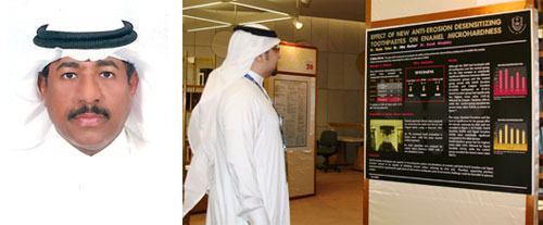 يتنافس المشاركون في برنامج الملصقات العلمية على جائزة الدكتور طارق الجهني (رحمه الله) لأفضل ملصق علمي حيث سيتم إعلان الملصق الفائز مساء اليوم الأربعاء.. أوضح ذلك الأستاذ الدكتور سعد بن عبد العزيز النزهان رئيس لجنة التعليم المستمر والملصقات العلمية وكيل كلية طب الأسنان للدراسات العليا.. وقال إن 38 ملصقاً تشارك في هذا المؤتمر ليتم المفاضلة بينها وتقييمها من قبل ستة من أعضاء هيئة التدريس من مختلف التخصصات.. وقد وضعت اللجنة معايير علمية محددة ليستخدمها المحكمون لتقييم الملصقات.. وقد أبدى الدكتور النزهان سروره البالغ لما رآه من تنافس علمي رفيع المستوى من خلال عرض جهود بحثية علمية مميزة.. كما عبَّر عن عميق شكره لجميع المشاركين في برنامج الملصقات العلمية لإثرائهم فعاليات المؤتمر بهذه المشاركات.