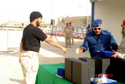 شهد قائد قاعدة الرياض الجوية بالقطاع الأوسط اللواء الطيار الركن عبداللطيف بن عبدالله الشريم صباح أمس في ميدان العرض بمركز تدريب وحدة أمن مطار الملك خالد الدولي حفل تخريج دورة الشرطة الجوية التأسيسية الاستثنائية التاسعة.وقد بدأ الحفل بآيات من كتاب الله ثم كلمة قائد وحدة أمن مطار الملك خالد الدولي العميد الفني علي بن مليح الأسمري وكلمة للخريجين وقصيدة نبطية بهذه المناسبة ثم أعقب ذلك تمرين مكافحة الشغب ثم تم عمل عرض صامت لحركات المشاة ومسابقة المهارات في فك وتركيب الأسلحة، بعد ذلك قدم استعراض للمهارات العالية بتمرين للقتال في المناطق المبنية وطريقه تحريرالرهائن ثم أعلنت نتائج تخريج الدورة، وقام راعي الحفل بتسليم الشهادات على الخريجين.