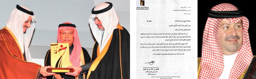 وقال سموه في خطاب وجّهه للشيخ عبد الله باحمدان رئيس مجلس إدارة البنك «يسرنا أن نبارك لكم حصولكم على جائزة الملك خالد للتنافسية المسؤولة -المركز الأول- لعام 2009م، وذلك للعام الثاني على التوالي ونأمل أن تكون حافزاً للعاملين لمواصلة الأداء المُتميز».