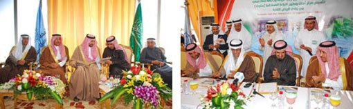 وأكد الدكتور بالغنيم في كلمته أن من أولويات وزارة الزراعة هي تحقيق تنمية زراعية مستدامة مع الحفاظ على الموارد الطبيعية وفي مقدمتها المياه وتوفير التقنية في القطاع الزراعي من خلال إدخال أحدث التقنيات العالمية والاستفادة من الأبحاث في مجال العمليات الزراعية لتحقيق عوائد مجزية للمزارعين وتغطية جزءً كبيراً من احتياجات المملكة الغذائية ومن أهم هذه التقنيات الزراعية الحديثة الزراعة بالبيوت المحمية والتي تعمل على تحسين الإنتاج الزراعي وتساهم في زيادة الإنتاجية الزراعية للوحدة المنتجة من المحاصيل كماً ونوعاً حيث تصل إنتاجية الهكتار الواحد إلى عشرة أضعاف بعض المحاصيل عن زراعتها في الأراضي المكشوفة كما أنها توفر في استهلاك المياه بنسبة قد تصل إلى 60%، ومن المؤمل أن يساهم تأسيس مركز أبحاث الزراعة المستدامة (ساردك) في تحقيق إضافة للقطاع الزراعي في مجال البحوث الزراعية ونقل وتوطين أساليب الزراعة المستدامة وتقنيات البيوت المحمية وتطويرها وإكثار الأعداء الحيوية وتطوير النظم المائية والتسميد.. وخلص إلى أن وزارة الزراعة تتطلع إلى أن يحقق المركز أهدافه المرجوة منه فيما يخدم تطوير البيوت المحمية والنظم المائية كما تتطلع إلى استمرار التعاون القائم بين وزارة الزراعة وبيوت الخبرة المحلية وفي مقدمتها جامعة الملك سعود والتي تحظى بمكانة مرموقة بين الجامعات العالمية، مشيرا إلى تنفيذها للعديد من المشاريع التنموية العلمية والعملية.