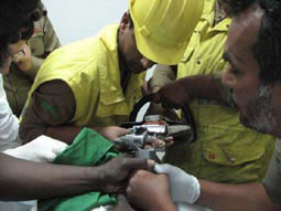 تمكنت فرقتا إنقاذ تابعتان للدفاع المدني أمس من استخراج يد طفلة تم احتجازها أثناء عمل والدتها في المطبخ داخل فرامة لتقطيع اللحم تحت إشراف كادر طبي بمستشفى النور التخصصي، وقد تعرضت الطفلة لجرح هرسي باليد ووفقاً لما ذكره مدير التحقيقات والناطق الإعلامي بالدفاع المدني بالعاصمة المقدسة المقدم علي المنتشري فإن الحادث عرضي ووقع في غفلة والدتها وعملها بالمطبخ وان مدير إدارة الدفاع المدني بالعاصمة المقدسة العميد جميل أربعين يهيب بربات البيوت عند استخدام مثل هذه الآلات الخطرة في المنزل مراقبة أطفالهن وإبعادها عن متناول أيديهم لسلامتهم.
