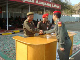 احتفل مركز ومدرسة الشرطة العسكرية الخاصة الأربعاء الماضي بتخريج العديد من دورات المرحلة الأولى شارك فيها 302 ضابط وصف من مختلف وحدات الشرطة العسكرية الخاصة، وذلك بحضور قائد منطقة الطائف العسكرية اللواء الركن فهد بن مرداس القحطاني وعدد من القيادات العسكرية بقيادة المنطقة وقادة الوحدات العسكرية ومديري التنسيق في كافة القطاعات العسكرية بالقوات الجوية بمحافظة الطائف. وقدم المتخرجون في إطار فعاليات الحفل عرضا عسكريا شارك فيه تشكيلة من الدراجات النارية بالعديد من العروض المختلفة أمام المنصة الرئيسية، وقدم بعض الخريجين مهارات في لعبة الكراتيه والدفاع عن النفس. بعد ذلك بدأ الحفل الخطابي بآي من الذكر الحكيم ثم ألقى قائد مركز ومدرسة الشرطة العسكرية العميد الركن غالب بن عبدالله السعدون كلمة حث فيها الخريجين على تقوى الله ومراقبته في السر والعلن ومواصلة طلب العلم والمعرفة وتطوير ذاتهم لما لذلك من أهمية كبيرة في القوات المسلحة.