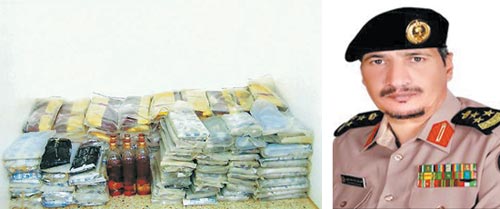 تمكنت الدوريات التابعة لقيادة حرس الحدود بمنطقة نجران خلال الأربع والعشرين الساعة الماضية في عدد من المواقع التابعة لقطاع سقام من إلقاء القبض على عدد خمسة أشخاص بعد أن قاموا بإطلاق النار على الدوريات التي بادلتهم بالمثل، وذلك أثناء محاولتهم تهريب كمية كبيرة من مادة يشتبه بأنها من الحشيش المخدر تقدر بحوالي 204 كيلوجرامات، وكذلك عدد من زجاجات الخمور وعدد من الجوالات وشرائح الاتصالات السعودية واليمنية وبعض الأوراق والطلاسم المحتمل استخدامها في السحر والشعوذة، وقال قائد حرس الحدود بمنطقة نجران المكلف العميد عبدالرحمن بن غرامة الشهري: إن رجال حرس الحدود مصممون على الوقوف دائماً ضد من تسول له نفسه التهريب أو التخريب أو العبث بأمن حدود بلادنا مستنيرين بالتوجيهات الكريمة والمتابعة الدائمة من سيدي صاحب السمو الملكي الأمير مشعل بن عبدالله آل سعود أمير منطقة نجران وكذلك الدعم اللامحدود من سعادة المدير العام لحرس الحدود بالنيابة اللواء ركن زميم بن جويبر السواط لهذه المنطقة والوقوف الدائم مع العاملين بها مستمدين جميعاً العون من الله جل جلاله لما يخدم ديننا ومليكنا وأمن وطننا.
