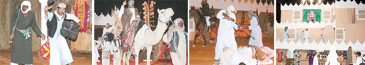 المسرحية نفذت استعراضاً مفتوحاً أمام الجمهور للهجن والخيول وحياة البادية واستخدام البنادق والطلقات النارية واستخدام القنابل والسقوط على الأرض والسقوط من أعلى مبنى الدروازة.