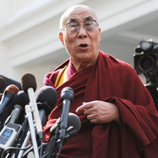 وفي تصرف غير معتاد من زائر كبير، تقدم الدالاي لاما إلى خارج المقر في اتجاه الصحافيين الكثر الموجودين وتحدث إليهم مباشرة اثر زيارته للبيت الأبيض التي استغرقت 45 دقيقة.