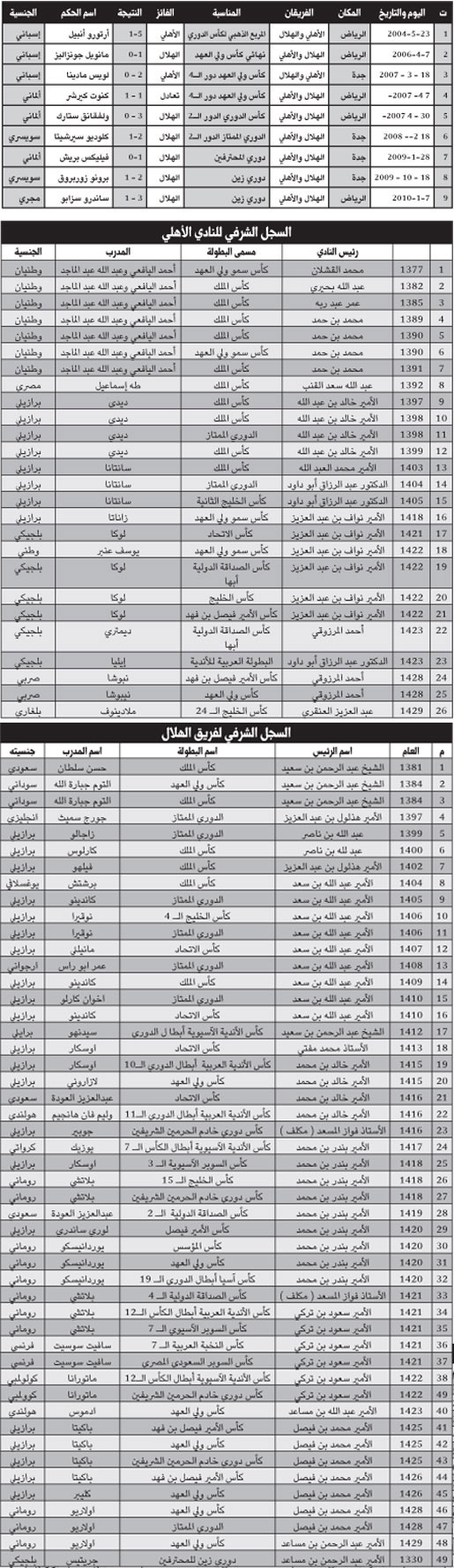 وأول صافرة أجنبية كانت في المربع الذهبي لكأس دوري خادم الحرمين الشريفين، وتمكن الأهلي من الفوز في تلك المباراة، أما آخر حكم قاد لقاءي الفريقين فكان في مسابقة دوري زين عندما تمكن الهلال من الفوز بها.
