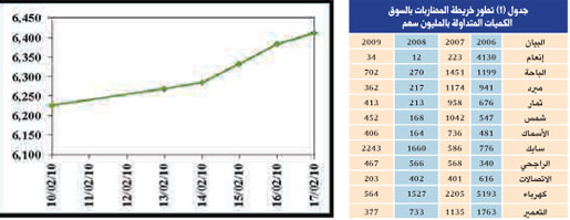 يوضح الجدول (1) التطورات في خريطة التداول بالسوق خلال السنوات الأربع الأخيرة (2006-2009)، وهو يوضح أن هناك تغيرات كبيرة طرأت على توزيع حركة التداول ما بين أسهم مضاربات وأسهم استثمارية.. فخلال عامي 2006 و2007 كانت هناك أسهم معينة تسيطر على حركة التداول، وكان أغلبها يعرف بأسهم المضاربات غير الاستثمارية، مثل إنعام والباحة ومبرد وثمار وشمس والأسماك، حيث كانت هذه الأسهم الستة تحتل النسبة الأعلى من حركة التداول تقريباً.. في المقابل كانت الأسهم الاستثمارية الكبرى تتداول بكميات صغيرة، فالكمية المتداولة من سابك في عام 2009 تزيد كثيرا عن كمياتها المتداولة خلال عامي (2006-2007).. أما خلال العامين الأخيرين (2008-2009)، فقد لوحظ تقلص حركة تداول أسهم المضاربات بشكل كبير لدرجة أن الكمية المتداولة من أسهم المضاربات الستة (المذكورة بالجدول 1) خلال عام 2009 تقل عن الكمية المتداولة لسهم إنعام وحده في عام 2006.. على النقيض بالنسبة للأسهم الاستثمارية الكبرى، التي أصبح بعضها ينال حظاً أكبر في حركة التداول، وعلى رأسها سهم سابك الذي أصبح حصان طروادة السوق.. ولكن هذا الوضع لا ينطبق على كافة الأسهم الاستثمارية، فعلى سبيل المثال سهم الاتصالات بدأ ينزوي خلال العام الأخير، كذلك الحال بالنسبة لسهم الكهرباء الذي تقلصت كمياته المتداول بأعلى من 89% خلال السنوات الأربع الأخيرة.