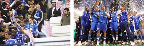 يتهم ظلماً بأنه المحابى.. فتزيد انتصاراته.. يرمى مسيروه وجماهيره بصفات سوداء منذ الأزل فلا يزيدهم ذلك إلا إصراراً وعشقاً لذلك الكيان.. تبرر انتصاراته بوصولية وتلاعب.. ليطالب هو - على عكس المنتظر والمنطقي - بجلب كل ما من شأنه إظهار الحقيقة وإزاحة ما يحاول أولئك بثه من ألاعيب ليست إلا وحي خيال.. ولسان حال ذلك الكيان العظيم: لا يلام أصحاب تلك العقول.. فمثل أولئك لن يجدوا ما يعزون إليه تفوقي الدائم وخسوفهم المستمر إلا بهكذا ادعاءات.. فعقولهم تعجز عن اكتشاف غير ما ذكر.. وفاقد الشيء - هنا - لن أقول لا يعطيه.. بل لا يمكنه حتى أن يتخيله. دامت زرقتكم يا من انتميتم إليه.. ودام هلالكم راسماً للبسمات على شفاهكم.