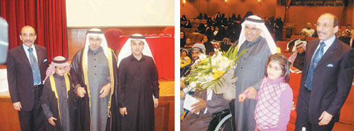 تحت رعاية وكيل وزارة الشؤون الاجتماعية الدكتور عبدالله اليوسف نظَّمت إدارة العلاقات العامة بالمستشفى السعودي الألماني بالرياض برنامج يوم الإعاقة العالمي، الذي أُقيم بقاعة الاحتفالات الكبرى بالمستشفى. وقد بدأ البرنامج بتلاوة عطرة من القرآن الكريم، قدَّمتها طفلة من ذوي الاحتياجات الخاصة من مركز الإشراف في الدرعية، ثم كلمة ترحيب المستشفى، ألقاها الأستاذ عبدالفتاح عبده حسنين المدير العام للمستشفى، الذي رحَّب بدوره بمعالي وكيل الوزارة لحضوره الكريم، بالسادة والسيدات الحضور، وأفاد بأن المستشفى يحتفل بيوم الإعاقة العالمي ضمن العديد من الأنشطة، وهذا من أهم أهداف المجموعة «بعد نجاحنا تقنيا وطبيا»، ثم كلمة وكيل الوزارة الدكتور عبدالله الذي أبدى سعادته بحضور هذا اليوم، وتوجه بالشكر إلى إدارة المستشفى السعودي الألماني ممثلة بالأستاذ عبدالفتاح حسنين على دعوتهم إياه لرعاية وحضور الحفل تفاعلا مع يوم الإعاقة والشراكة والمسؤولية الاجتماعية المشتركة بين القطاعين الحكومي والخاص؛ حيث تم توجيه جميع المراكز والقطاعات للاحتفال بهذه الفعالية، إضافة إلى إقامة المعارض والندوات الخاصة بشؤون وحقوق المعاقين وتوزيع كتيبات ومنشورات توعوية توضح كيفية التعامل مع الطفل المعاق من جميع النواحي، إضافة إلى صرف الأجهزة الطبية والمقاعد المتعددة الاستخدام على كل معاق. وبدأت فعاليات البرنامج بمحاضرة بعنوان (أبناؤنا المعاقون وسلالم النجاح) للأستاذ سلمان الشهري، الذي قدَّم بدوره النصائح المفيدة والطرق السليمة لتفادي أي إعاقة وتحقيق أكبر أهدافهم وطموحاتهم، ومن ثم قصيدة شعرية للطفل عبدالإله من معهد النور للمكفوفين وأنشودة مقدمة من أطفال مركز التأهيل بالدرعية وقصة قصيرة عن عاقبة الطمع للطفل عادل المطيري من مركز الصم والبكم وقصيدة لإحدى منسوبات جمعية الإعاقة الحركية، وختاما مسرحية قصيرة وأوبرت مقدم من أطفال مدارس رياض الخزامى، ومن ثم تكريم المشاركين؛ حيث كرمهم وكيل وزارة الشؤون الاجتماعية مع المدير العام للمستشفى.