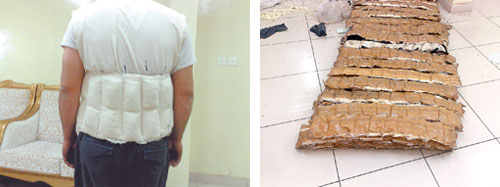 أحبط رجال الجمارك في منفذ الحديثة الجمركي خلال 24 ساعة أربع عمليات تهريب لحبوب الكبتاجون المخدرة، بلغ إجمالي عددها (1.233.000) مليوناً ومائتين وثلاثة وثلاثين ألف حبة مخدرة، حيث ضبطت الكمية الأولى فوق كابينة شاحنة أسفل الشمسية الخارجية بداخل قطعة من القماش على شكل