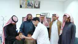 دشن محافظ محافظة الشنان الأستاذ سعود الغازي يوم أمس السبت بمكتبه في المحافظة، حملة تطعيم طلاب وطالبات الصف الأول الابتدائي بالجرعة الثانية من لقاح الثلاثي الفيروسي والجرعة المنشطة الثانية من لقاح الثلاثي البكتيري وشلل الأطفال، والتي تستمر خمسة أسابيع.