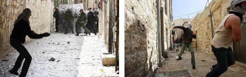 وعلى إثر ذلك وقعت اشتباكات عنيفة في باحات المسجد الأقصى بين مئات من المصلين الفلسطينيين وقوات من الشرطة التي أطلقت قنابل غاز مسيل للدموع. وقالت مصادر محلية إن «الفلسطينيين المعتصمين داخل المسجد منذ السبت يرشقون الشرطة الإسرائيلية بالحجارة والتي تدفع الآن بتعزيزات إضافية إلى المكان». وكانت عدة جماعات يهودية واستيطانية في إسرائيل دعت أنصارها للتجمع في باحة البراق (حائط المبكى) قبل أن تنطلق مسيرات ومظاهرات في المدينة خاصة في محيط المسجد الأقصى. وأعلنت هذه الجماعات نيتها اقتحام المسجد الأقصى لإقامة ما قالت إنه شعائر دينية وطقوس تلمودية تأتي في إطار الاحتفالات بمناسبة ما يُسمى بعيد المساخر اليهودي.