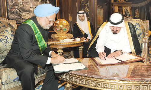 وقع خادم الحرمين الشريفين الملك عبدالله بن عبدالعزيز آل سعود ودولة رئيس وزراء جمهورية الهند الدكتور مانموهان سينغمساء أمس على إعلان الرياض (عهد جديد من الشراكة الإستراتيجية)، حيث أقر الزعيمان الارتقاء بالعلاقات لمستوى الشراكة الإستراتيجية لتشمل المجالات الأمنية والاقتصادية والدفاعية والسياسية، وأكد الزعيمان على أهمية تنمية شراكة اقتصادية ذات قاعدة عريضة تعكس التحول المستمر في اقتصاديات البلدين .