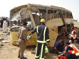 أدى ارتطام حافلة بلوحة إرشادية على طريق الهجرة بين المدينة المنورة ومكة المكرمة إلى انقلابها وارتطامها بجبل صغير، وأسفر الحادث عن وفاة امرأة وإصابة 17 من بين عدد الركاب الـ26 الذين كانوا في طريقهم للمدينة بعد تأديتهم لمناسك العمرة، وقد تم نقل المصابين إلى مستشفيات المدينة بمتابعة من الجهات الحكومية التي باشرت الحادث كالدفاع المدني والهلال الأحمر وأمن الطرق والشؤون الصحية.