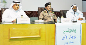 انطلق البرنامج التدريبي «تنوير» الذي تنظمه جامعة جازان بتدريب 40 فرداً من رجال الأمن بالمنطقة أمس الأول ضمن اتفاقية التعاون التي وقعتها الجامعة مع الأمن العام للتعاون المشترك في عدد من المجالات التدريبية والتعليمية وذلك بقاعة الأمير محمد بن ناصر في مجمع الكليات بـ(أبو عريش).