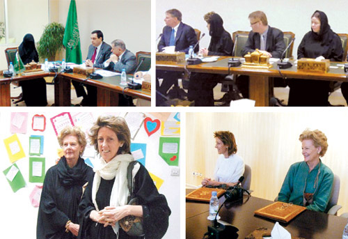 ومن خلال هذا الجانب استضافت إدارة جامعة الأميرة نورة بنت عبد الرحمن وفداً من الولايات المتحدة الأمريكية يضم الكاتبة إلين وارنر؛ وذلك لاكتشاف أوجه التقدم بما يخص النساء السعوديات وترافقها السيدة البريطانية فيرجينيا فوربز. وكان في استقبالهما سمو مديرة الجامعة الدكتورة الجوهرة بنت فهد آل سعود ووكيلات الجامعة وهن وكيلة الجامعة للدراسات العليا والبحث العلمي أ.د. فردوس الصالح ووكيلة الجامعة لشؤون خدمة المجتمع وتنمية البيئة د. نائلة الديحان ووكيلة الجامعة للدراسات والتطوير والمتابعة د. منيرة العبدان وعميدة كلية اللغات والترجمة د. أسماء أبو مالك وإدارة العلاقات العامة والإعلام. وقد تم خلال اللقاء إجابة التساؤلات التي طرحتها السيدة إلين وارنر عن عرض مرئي للوفد لمباني الجامعة الجديدة وتم إيضاح أقسامها التي تشتمل على سكن لمنسوبات الجامعة ومستشفى ومكتبة مركزية وإلكترونية كبرى ومدارس لذوي الاحتياجات الخاصة ومرافق كثيرة أخرى مهمة، كما زار الوفد مباني السنة التحضيرية والتقى العميدة د. أمل الطعيمي واطلع على بعض القاعات الدراسية وعلى نظام المعامل الذكية.