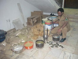 ضبطت دوريات هيئة الأمر بالمعروف والنهي عن المنكر بالعرضية الجنوبية مصنعين للشمة، وذلك أثناء مرورها على الأماكن العامة، حيث لاحظت عاملاً بالقرب من مصنع للبلك يستخدم أدوات سحب الشمة، وقد ارتبك لدى مشاهدته الدورية ورمى بأداة السحب وراء غرف مهجورة، وبعد التفتيش عثر على مصنعين لترويج الشمة المحرمة شرعاً والممنوعة نظاما ووجدت كميات كبيرة تقدر بـ120كجم من الشمة الجاهزة للترويج وأدوات التصنيع، وتم القبض على العامل وإحالة القضية لجهات الاختصاص.