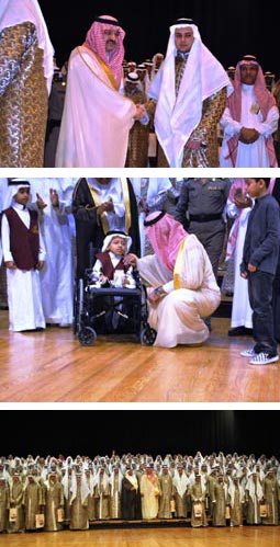 تلا ذلك تكريم أسر 8 طلاب استشهدوا في حوادث السيول الأخيرة. وبث الأوبريت الغنائي «وطن الآمال» الذي شدت به مجموعة من الطلاب وقد وقف الحضور مصفقين لفترة طويلة حين قدم طالب من ذوي الاحتياجات الخاصة «إعاقة حركية» وقدم لمحة فنية جميلة من جملة من القدرات التي شدا بها في الأوبريت خاصة أنها حوت معانيها تخليدا لذكرى جميع من فقدوا في الأحداث.