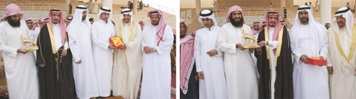 وفي نهاية الشوط السابع سلم مدير عام نادي الفروسية والهجن الأستاذ بدر الوهيبي وبمشاركة الأستاذ أحمد الرشودي والأستاذ عبدالعزيز القرعاوي درعاً تذكارياً لمالك الجواد الفائز بالشوط الرئيسي بالنيابة الأستاذ سلطان الحمادي كتكريم له وأيضاً سلم للمالك والمدرب درعين تذكاريين.
