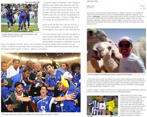 أما المحترف الآخر كماتشو فقد قدمت الصحيفه مقدمة موجزة عن اللاعب الذي أصبح مليونيرا في المملكة وأنه حصل على الكثير من الجوائز والهدايا ويحصل على سيارة ومجوهرات وأحجار وسلاسل ذهب والكثير من الساعات وأنه كان ضمن الفريق الذي هبط ببوتافوقو إلى الدرجة الثانية ثم صعد به مرة أخرى ورغبته بالعودة إلى البرازيل بعد نهاية عقده في العام 2011 .