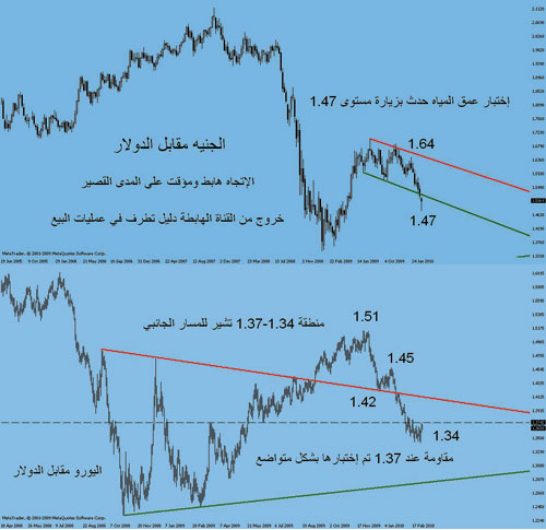 كبَّد الدولار العملة الملكية خسائر فادحة، والهدف أن يكون مقابل كل جنيه إسترليني دولار واحد، ولوحظ تطرف في صفقات البيع خرج إثرها الزوج من قناته الهابطة إلى 1.47، ويرجح أن ينتقل إلى قناة هابطة أوسع نطاقا من الحالية، والهدف الأسبوع القادم 1.53 مؤقتاً.