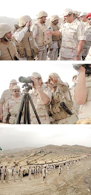 رافق سموه خلال الجولة صاحب السمو الملكي اللواء الركن خالد بن بندر بن عبد العزيز نائب قائد القوات البرية وقائد المنطقة الجنوبية اللواء الركن علي بن زيد خواجي وعدد من كبار ضباط القوات المسلحة.