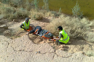 تمكن رجال الدفاع المدني بساجر بقيادة مدير المركز النقيب غازي الغازي من العثور على مسن يبلغ من العمر 75 عاماً فاقداً للذاكرة ويعاني من مرض السكري والضغط.. خرج من منزله دون علم ذويه ببلدة جفن شمال ساجر عصر أمس الأول وسقط في حفرة عميقة مليئة بالمياه، حيث تبعد عن منزله حوالي الخمسة كيلو مترات وتدحرج من الأعلى إلى أسفل الحفرة وقد أحاطه الله بعنايته وحفظه، إذ إنه وجد على بعد سنتيمترات من الماء الذي سقط بجانبه وقضى ليلته هناك على هذا الوضع حتى تم العثور عليه بعد بحث دام لأكثر من عشر ساعات من إبلاغ ذويه عن فقدانه. وتم إخراجه من الحفرة من قبل رجال الإنقاذ وهو بصحة جيدة عدا بعض الكدمات من آثار السقوط.