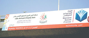 امتدادا لدعمه السنوي المتواصل لسباق الجري الخيري يرعى البنك السعودي الفرنسي سباق الجري الخيري السنوي الخامس عشر الذي سيُقام يوم الخميس الثاني من شهر ربيع الثاني القادم الموافق 18-3-2010م، برعاية كريمة من صاحب السمو الملكي الأمير محمد بن فهد بن عبدالعزيز أمير المنطقة الشرقية، تحت شعار (حملة دعم العمل التطوعي) بالواجهة البحرية بالخبر. ويحظى السباق الخيري بمشاركة جماهيرية كبيرة وبحضور عدد من المسؤولين ورجال الأعمال والإعلاميين والشخصيات الرياضية والاجتماعية بالمنطقة الشرقية.