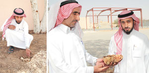 عثر رائد النشاط والمعلم بمتوسطة إبراهيم العبدالوهاب (اليرموك) بالمجمعة عبدالسلام بن عثمان بن الأمير صباح أمس الثلاثاء وأثناء حصة التربية الرياضية على كمأة من نوع (الزبيدي) يصل وزنها إلى كيلو جرام. وقال المعلم ل(الجزيرة): لفت انتباهي وأنا أتابع حصة التربية الرياضية لون أبيض ناصع في الأرض مما استوقفني فكانت النتيجة العثور على الكمأة بهذا الحجم، مشيراً أنها تعاني من الضمور بسبب العطش الشديد, مبدياً دهشته لوجودها في هذا الوقت والزمان.