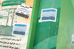 والحاصل الآن أن الإعلانات الدعائية على الملصقات في تطور مستمر، وتنوع كبير، فإلى جانب تسويق القروض أصبحت هناك ملصقات منافسة لتسويق بعض المواد الطبية والغذائية.
